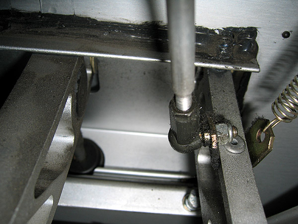 右端の真鍮色をしているステーがボルトで留めている箇所が破断するのだ。 私は2007年の4月号で紹介しているが、18年近く前に対策を施している。 青エリは残念ながら、このあたりの対策をしておらず、やはり破断してしまった。