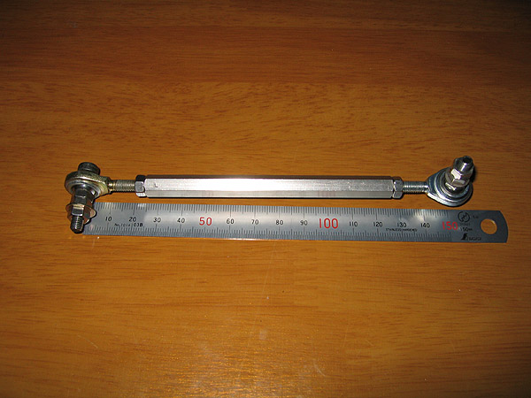 アクセルペダルのステー、このようなステーはホームセンターで探せば売っているだろうし、私のように平らなステーを加工しても良いと思う。 問題は150mmのターンバックルだと思うが、何とか頑張って探してほしい。