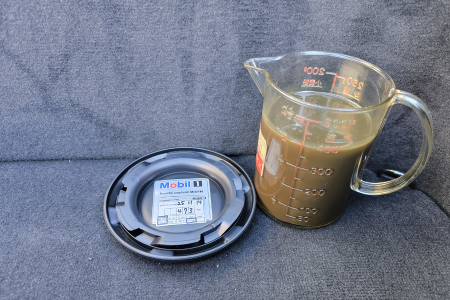 と、その前に、オイルとクーラントのチェック。 納車前に京都のポルシェセンターでオイル交換とエレメント交換、そしてプラグ交換もされているのだが、このエンジンはオイルを食うと聞いているのでチェック。