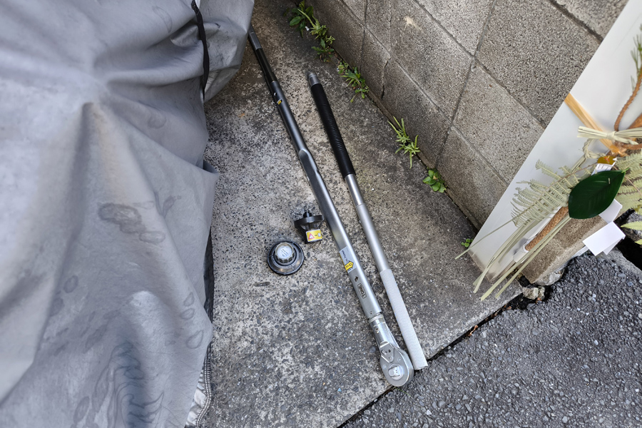 しかも、締め付けトルクは600N。 私の手持ちトルクレンチは1/2サイズの200N。 トルクが全く足りないので、自宅でホイールを脱着するためには新たにトルクレンチを買わねばならない。