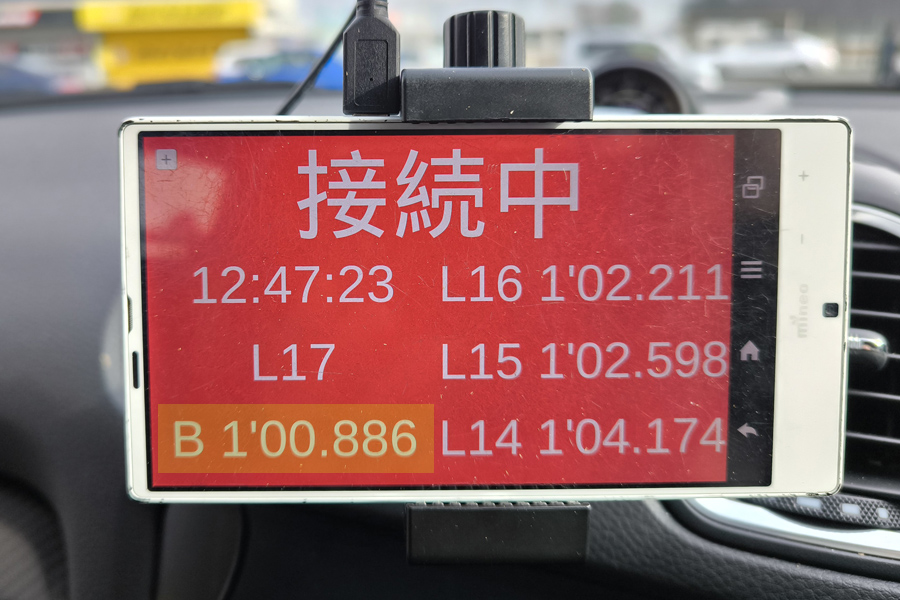 シェイクダウンは無理のない範囲での走行としたため、特に何も起きずに電子制御が沢山介入して終了。 タイムは1分1秒3、タラレバだと0秒8だったので、次回目標はそれだな。