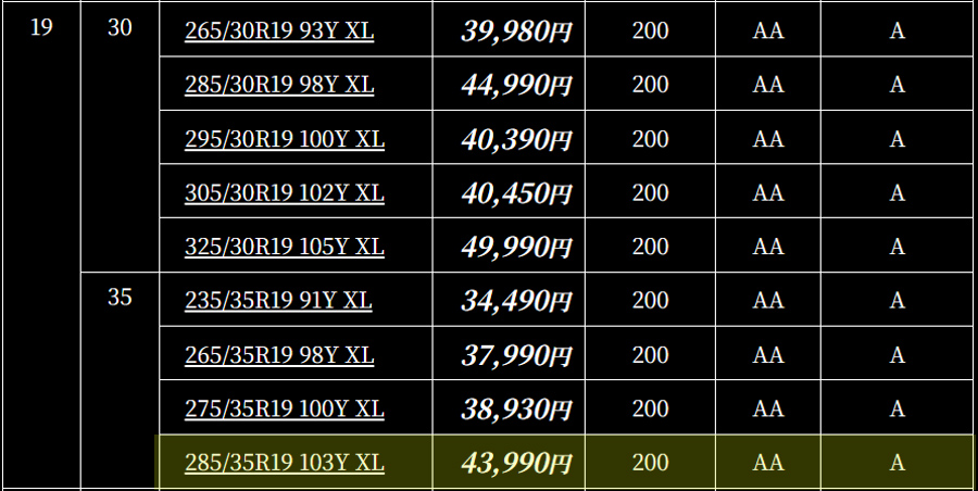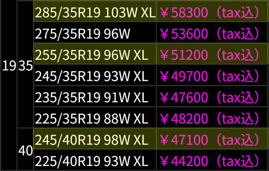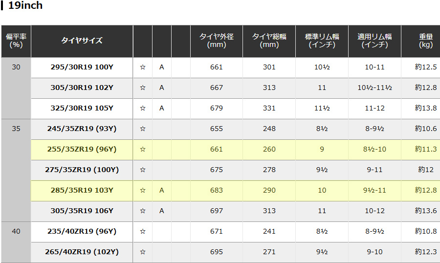 私はフロント255/35R19若しくは245/40R19、リヤ285/35R19若しくは295/35R19なのだが、フロントは少しフロント下がりの255/35R19が良い感じだったので、基本的には255/35R19としてリヤは295/35R19は国内に存在しないので285/35R19で行こうと思う。