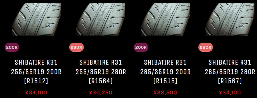 履くとしたらR31を履きたいと思っており、タイムアタック用の200Rではなく、オールマイティに使用できる280Rにしようかと思っているが、価格は非常に良心的。 アジアンタイヤというか、中国製で、こき下ろす人もいるけど、私は抵抗がない。