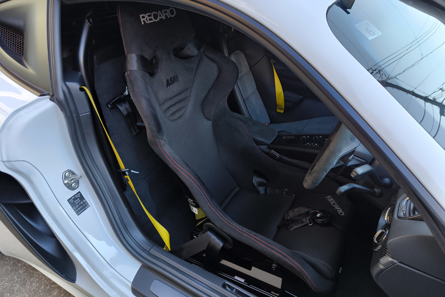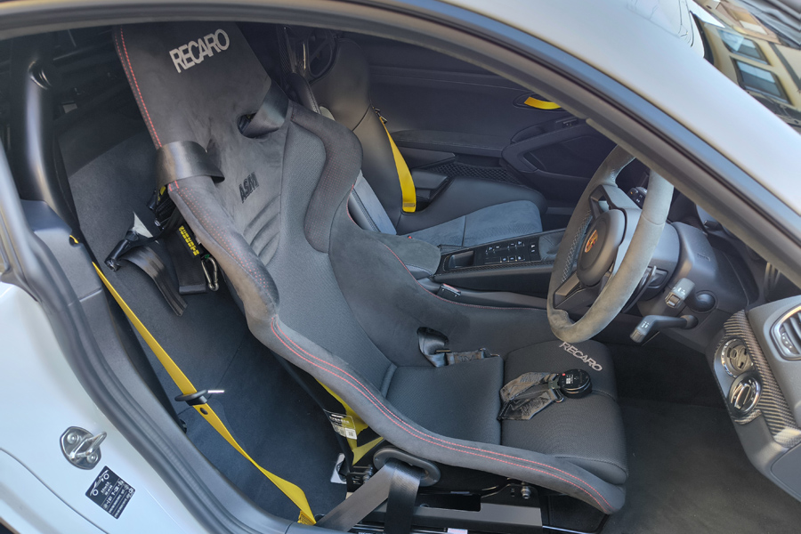 あ、そうそう、ポルシェ純正のフルバケットシートは私の身体に合わず、背中が立ちすぎて運転が辛いのでレカロのRS-Gに交換して臨んだ。 レカロのショップで購入したのだが、最新のフルバケットは私の身体には合わず、生産中止に成ってしまっていたRS-GのASMオリジナルであるRubyは在庫がまだ有るというので、ショップオリジナルのサイドサポートなどがアルカンターラになっている赤ステッチが入ったRS-Gを購入した。